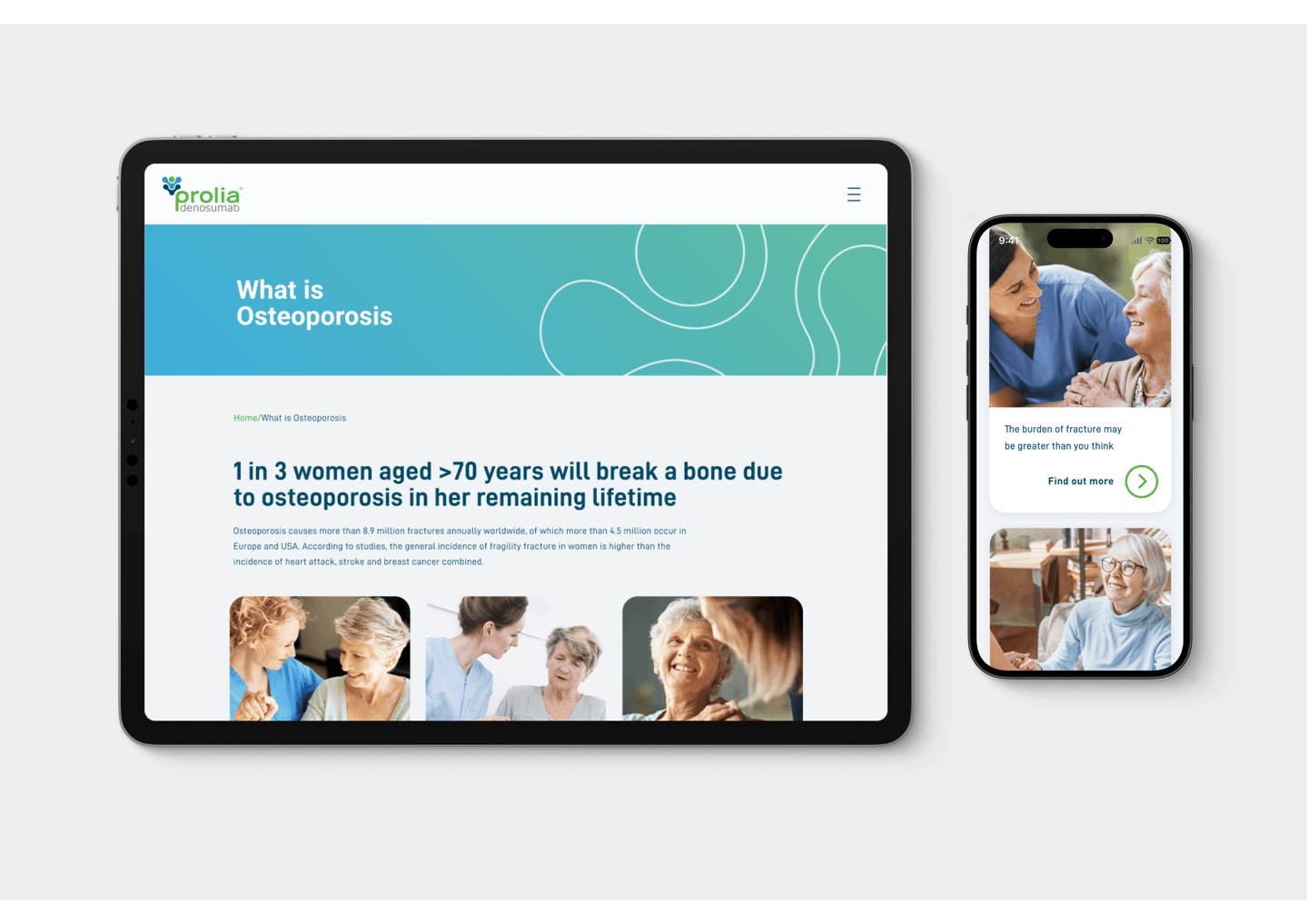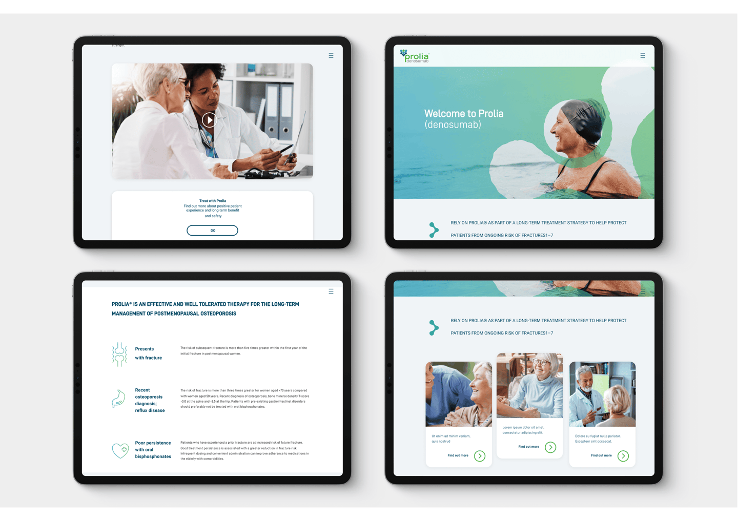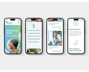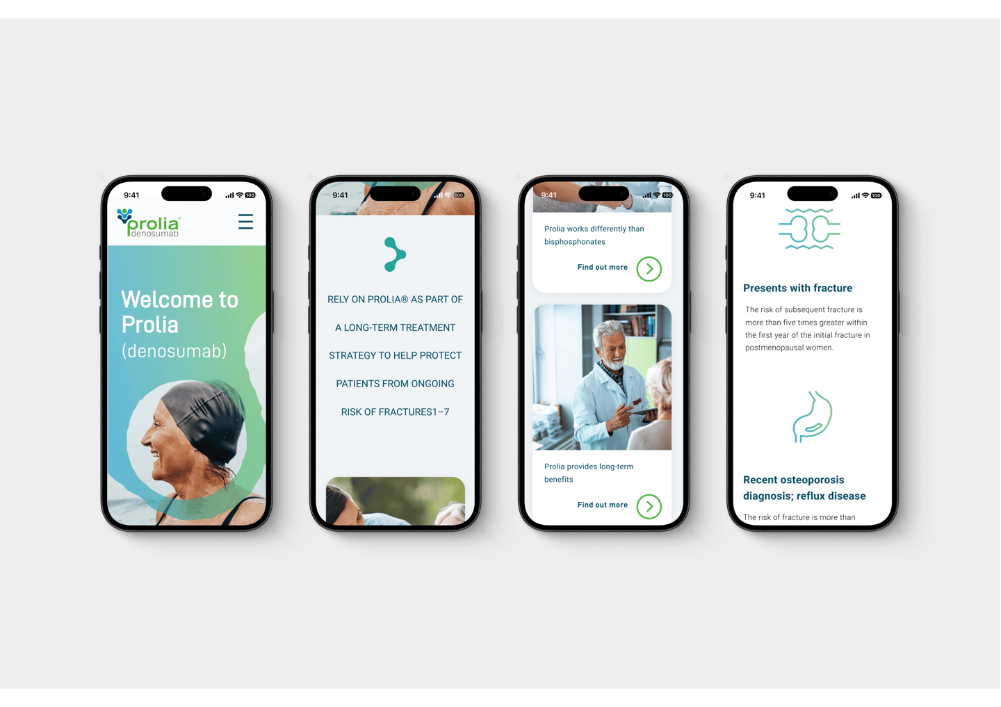 To address the rebranding challenge, we executed a fresh reskin of Prolia that reconnected with the brand's core driver: providing freedom and a new lease on life for patients. This overarching ideology was intricately woven into the brand’s new visual identity, particularly through a carefully curated color palette that features natural tones. These colors symbolize the positive possibilities that come with taking the medication, effectively reflecting the doors it opens for patients. By reinforcing this connection between the brand’s mission and its aesthetic, we aimed to foster deeper engagement with consumers, ultimately enabling them to see Prolia not just as a product, but as a pathway to improved well-being and enhanced quality of life.