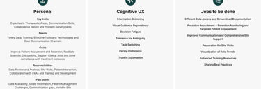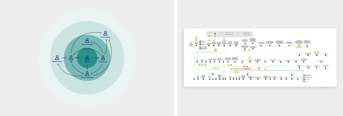 Halfway through the project, enhancing collaboration transparency became a central focus and area of interest, particularly as upper management began engaging in discussions around it. Within the site collaboration suite, our product emerged as a key platform for facilitating communication and collaboration among on-site stakeholders. This shift required us to analyze pain points and conduct interviews with key stakeholders—mainly Medical Liaisons (MLs), who primarily interact with Principal Investigators (PIs) and Clinical Research Associates (CRAs).