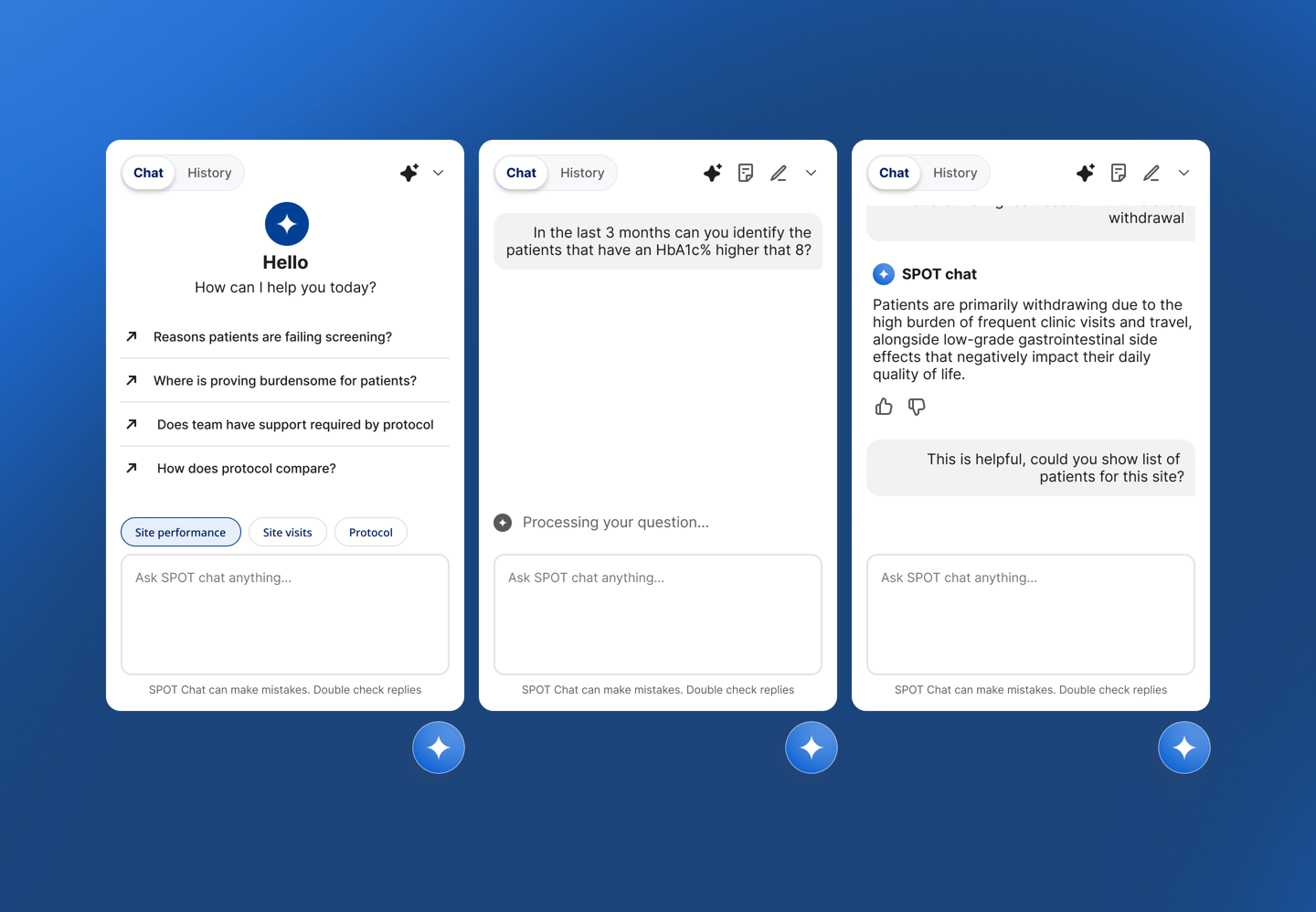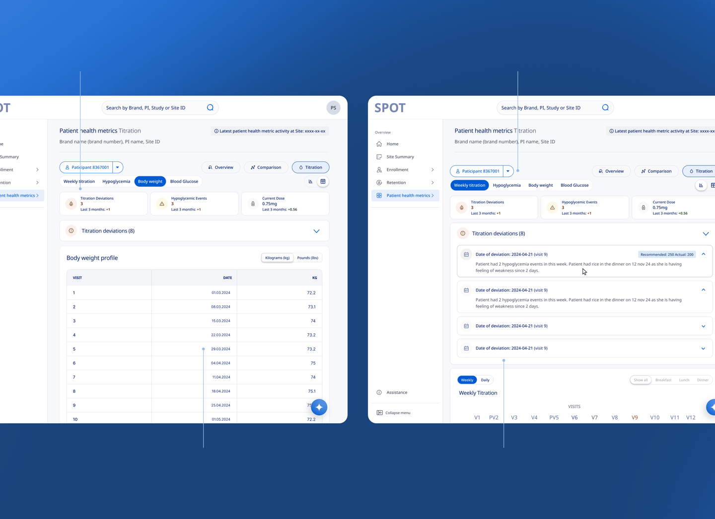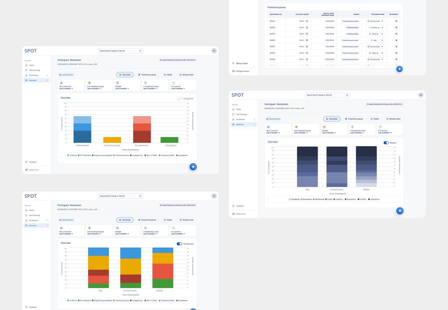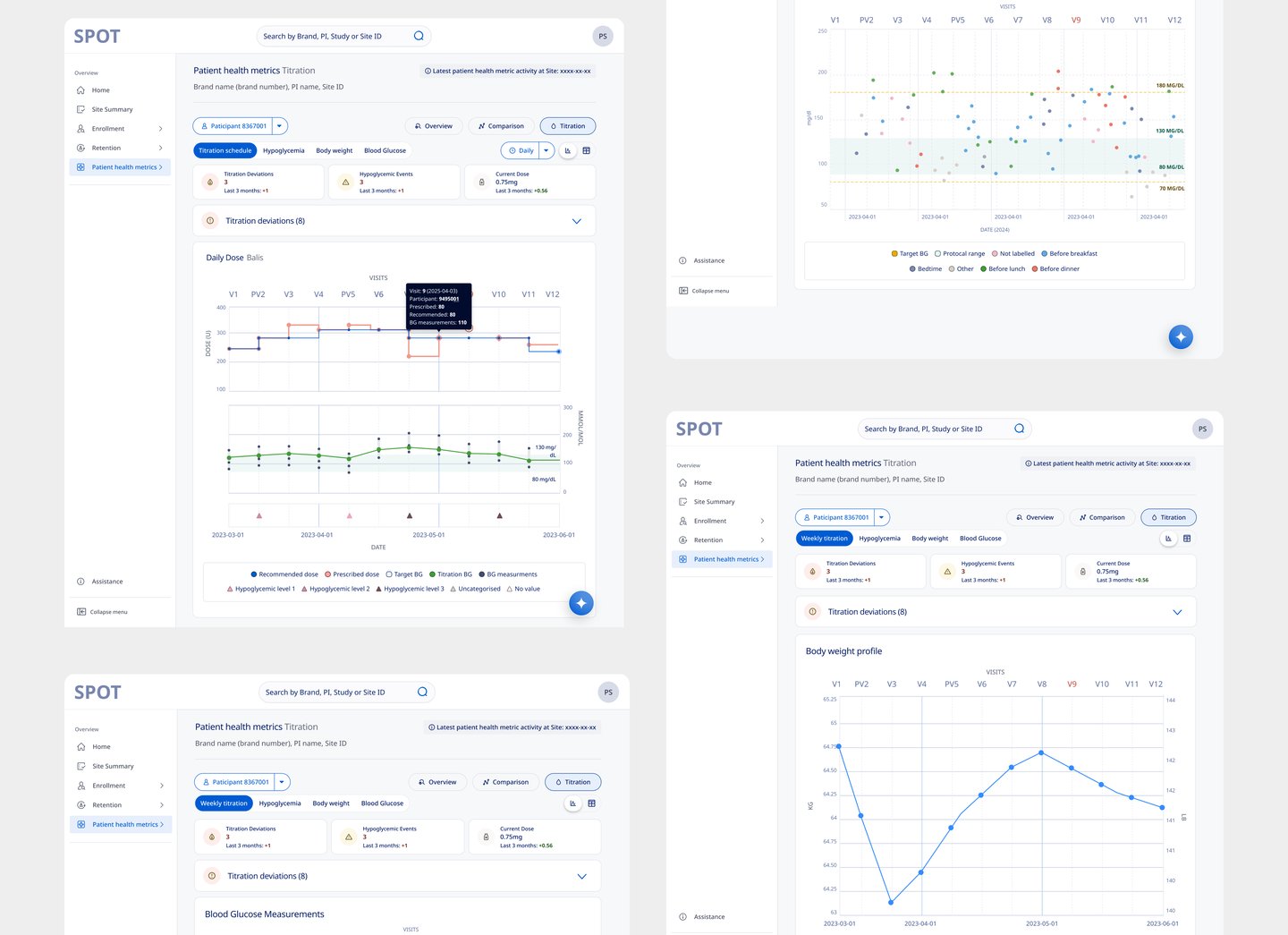 SPOT provides MLs with real-time enrollment trends and national benchmarks to drive targeted site support and investigator engagement. By surfacing participant health metrics and screening failure insights, it helps identify performance outliers and specific site needs. This streamlined access to actionable data enhances care coordination and fosters more effective interactions with healthcare providers.
