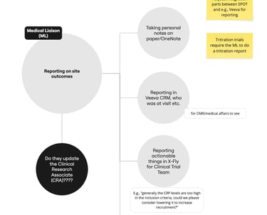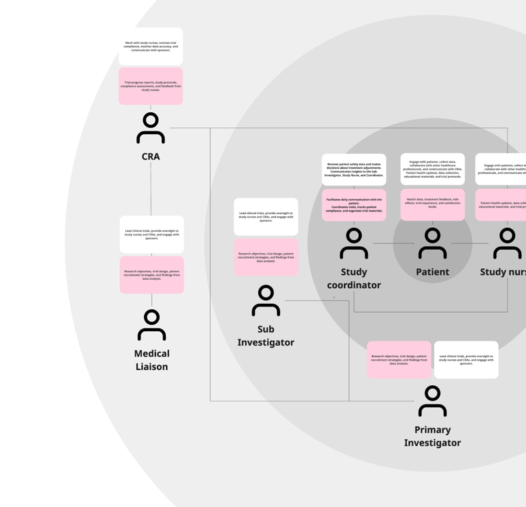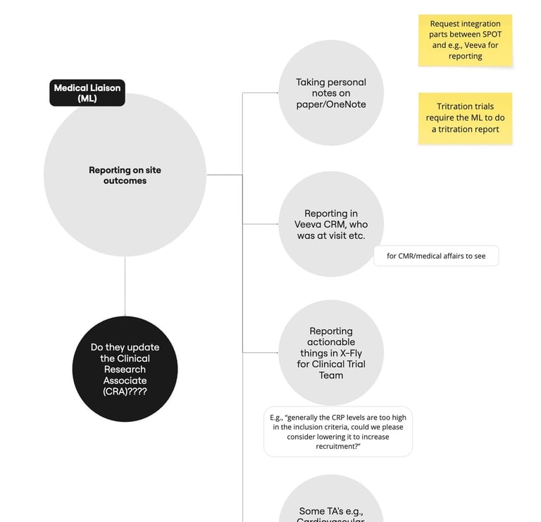 As our tool became the primary hub for on-site communication, I led a deep dive into stakeholder pain points—conducting interviews with Medical Liaisons (MLs) to streamline their critical interactions with PIs (primary investigators) and CRAs (clinical research associates).
