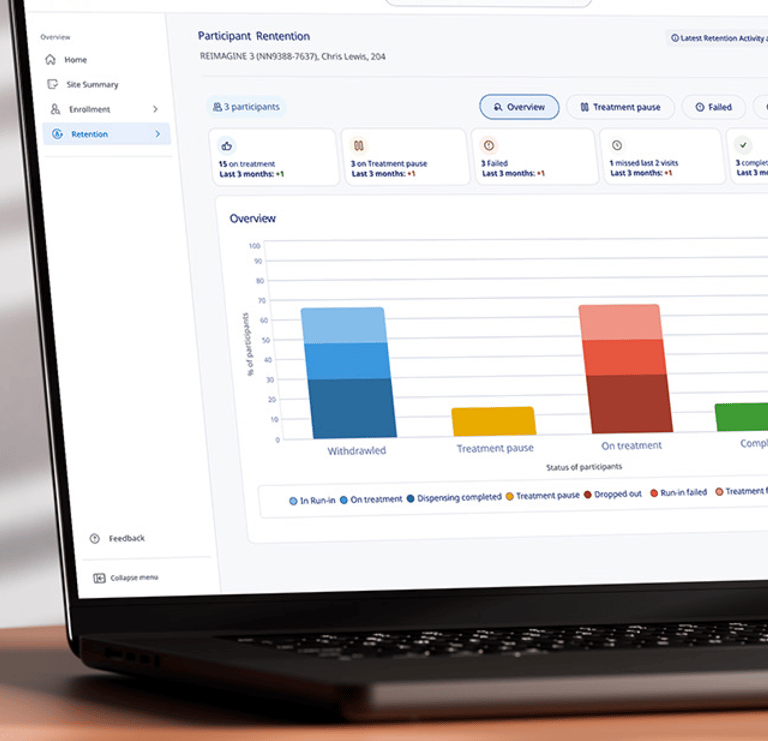 Optimise site performance. Track enrollment, retention and dose data to drive better site collaboration.